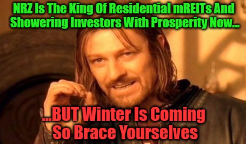 I view residential mREITs, including New Residential Investment Corp., as mostly "fair weather economic friends" meaning that a recession is likely to wreak havoc on earnings due to rising loan delinquencies and outright defaults.