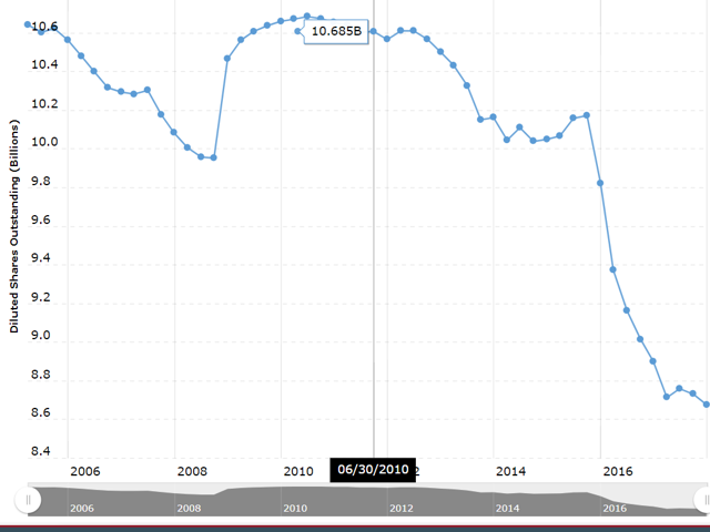 As you can see, the share count was over 10B in 2009, it is now around 8.6B shares.