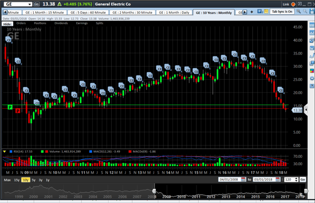Important Note: GE only traded under $13 for a few short months in 2009 when the financial world was burning down and fear was everywhere. It is a very different world now, and in my view, GE is going to be fine.