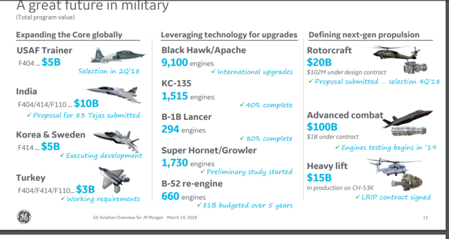 Look at this slide from a JPM presentation showing what it makes for defense spending. The market is missing the boat with GE and its prospects for the future, in my opinion.