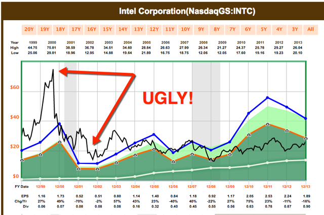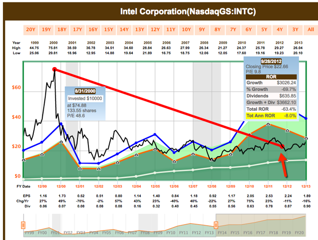 And, although it was a complete overreaction, I looked at how an investment in INTC in August of 2000 through September of 2012 generated a loss of over 63%, or as you can see below, a lovely (8%) annualized loss. Spooky!