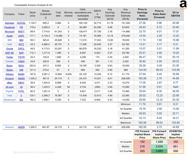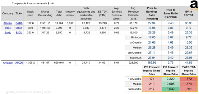 Now let’s get back to where we started from and compare the new multiples of Amazon with those of its key competitors: