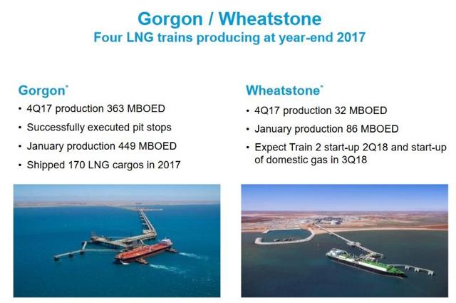 Meanwhile, Chevron"s most important projects are its liquefied natural gas (or LNG) facilities in Australia, Gorgon, and Wheatstone.