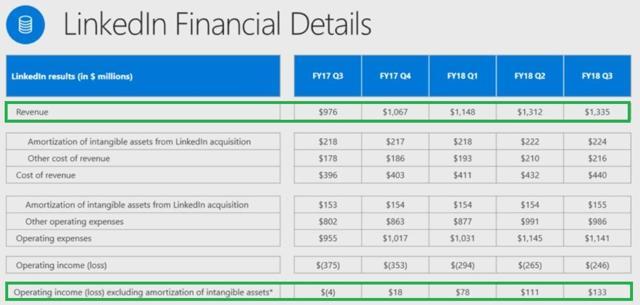A good example of how Microsoft improves its ecosystem is with the integration of acquisitions liked LinkedIn. That controversial $26.2 billion deal brought Microsoft the world"s premier HR social media network and has made Azure and Microsoft"s overall commercial and cloud ecosystem all the more valuable. Note that in the past quarter LinkedIn sales grew 37% and the company is now profitable on a cash flow basis. And on an earnings basis LinkedIn will be accretive to EPS in fiscal 2018, a year ahead of initial expectations.