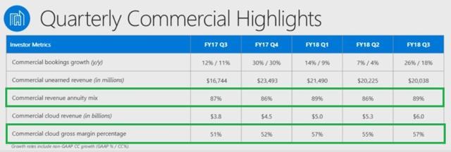 That means that Microsoft"s commercial revenues are now 89% from subscription services including Office 365 and Dynamics, both of which are hosted on its cloud platform and integrated into Azure. This will allow Microsoft to continue improving its feature set at an accelerating pace. That"s thanks to its investments in AI whose data analysis can provide real time feedback on what its customers are utilizing and thus what features might be more useful in the future.