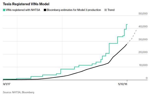 Second, Tesla should pass 5k/wk build rate and increase to higher than that during the middle of Q3. That means Tesla should build more than 60,000 cars in Q3. VIN filings must significantly increase to meet that pace, and those filings will be public information.