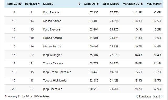 That rate is between the Jeep Grand Cherokee and the Toyota Tacoma. If realized, the Model 3 will become a top 20 selling car in the US, next quarter.