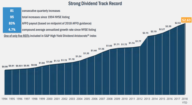 This is a company that has never missed a dividend payment and increased its dividend every year since going public in 1994. Not even the latest great financial crisis could stop the growth machine. If you are a conservative dividend-seeking investor who needs safe income, this is a very significant achievement not to be taken lightly.