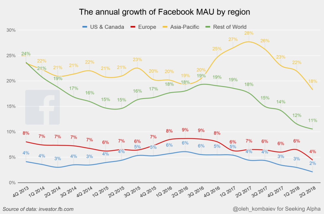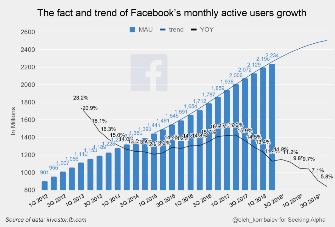 Facebook’s financial performance for the last quarter confirmed what had to happen sooner or later. Namely, the growth rate of Facebook’s active audience showed distinct signs of a slowdown. And, although before 2018, the trend of Facebook’s monthly active user growth anticipated was as many as 2.6 billion users by the end of 2019...