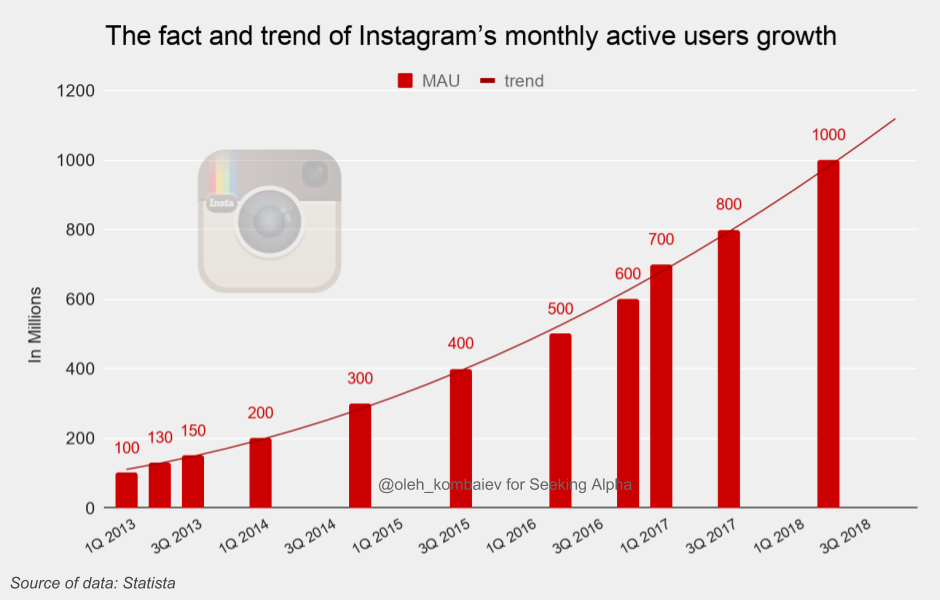 So, speaking about the real size of Facebook’s audience, we should not forget that, in addition to the audience of the social network itself, we should also add the audience of Instagram that has already exceeded 1 billion users: