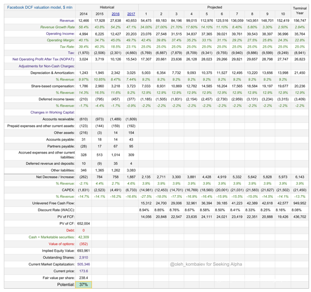 The DCF-based target price of Facebook"s shares is $238, offering ~37% upside.