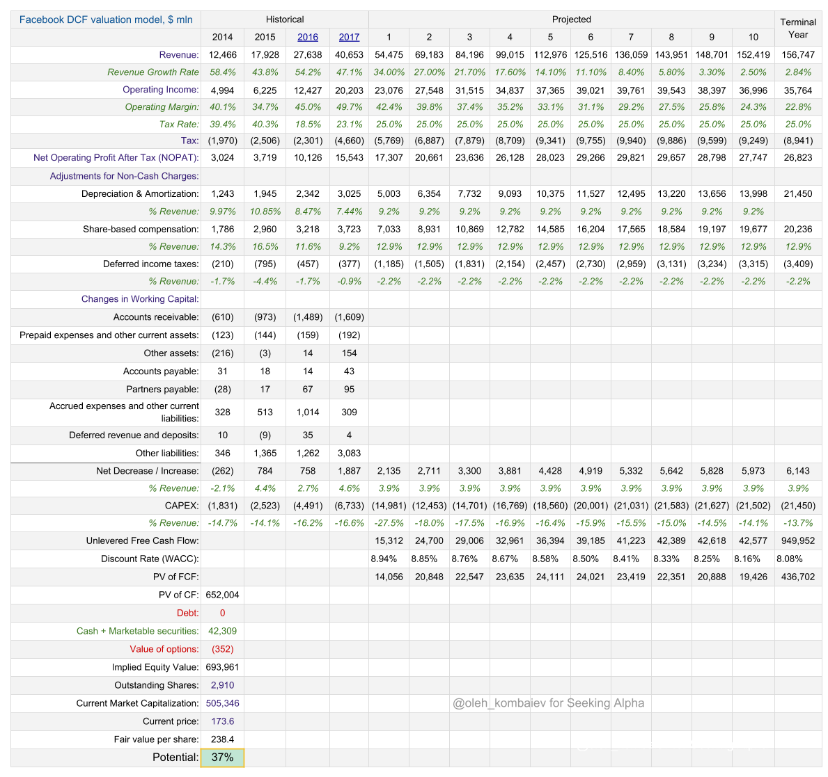 On August 16, I discussed the current state of Facebook’s capitalization through its multiples. Today, as promised, I present my DCF valuation of Facebook.